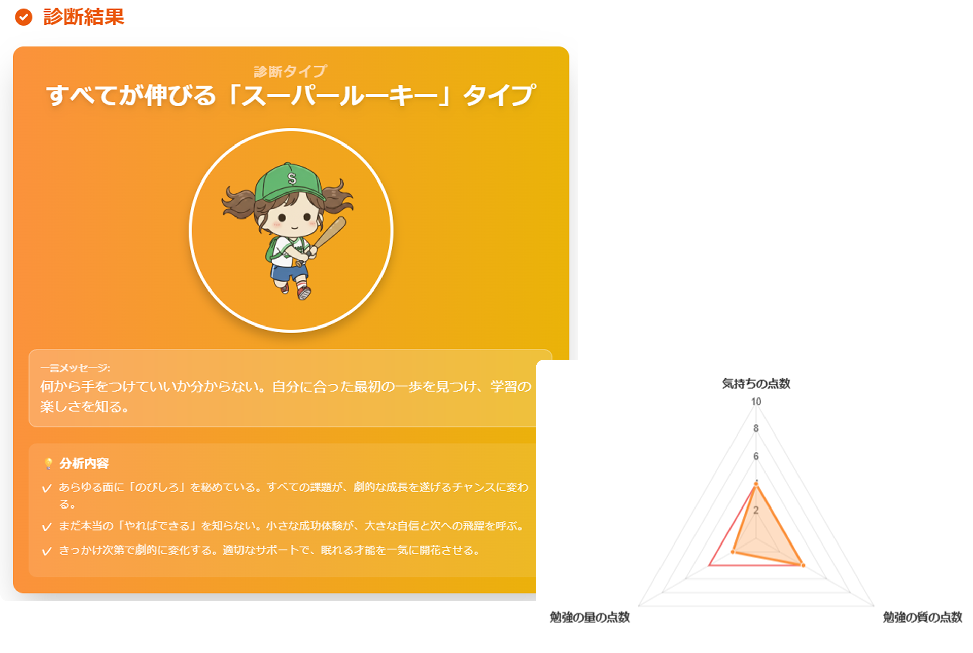 お子さまの伸びしろを発見できる「伸びしろ分析」を実施中!